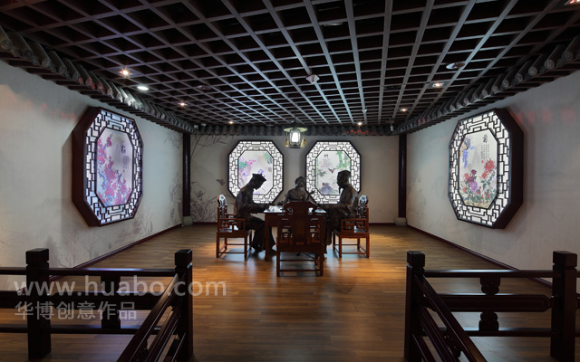 泰兴市文化博览中心是泰兴市十大重点工程之一,占地面积约1.8万平方米,总建筑面积8351平方米,其中地上建筑面积5003平方米,地下建筑面积3348平方米,东西向长度120米,南北向长度170米。 泰兴市文化博览中心以老县衙的重建和恢复为基础,重现古县衙的历史风貌,内设博物馆、名人馆、规划馆等三馆,以表现泰兴的人、物、城为主线,将城市沿革、历史名人、文化遗存、馆藏文物、现代城市风貌、城市发展远景融为一体,充分展示泰兴深厚的文化底蕴和现代文明。 泰兴市博物馆以“物华天宝,博观古今”为主题,展示城市的文物瑰宝,介绍城市的辉煌过去,呈现城市的灿烂文明。我们按照馆藏文物的种类,将物品分为四大类:字画、石刻、陶瓷器青铜器、麻将。我们重点打造麻将文化厅,介绍麻将起源、发展、工艺、种类及特色等内容,全面、生动形象刻画麻将在休闲文化中的地位,凸显泰兴作为“麻将之乡”所应有的形象与价值,以此为宣传并展示泰兴建设城市文化的窗口。 名人馆是泰兴市文化博览园的重要组成部分,以“人文郁盛,代有英才”作为展馆的主题,客观反映出泰兴从古至今人才辈出的现实。依照领域不同,可将展区分为八大类别:前厅、政坛俊彦厅、军旅星辰厅、名人廊、文化翘楚厅、科教精英厅、英雄模范厅和尾厅,通过场景、雕塑、展项等呈现故事的同时重点突出杰出人物。